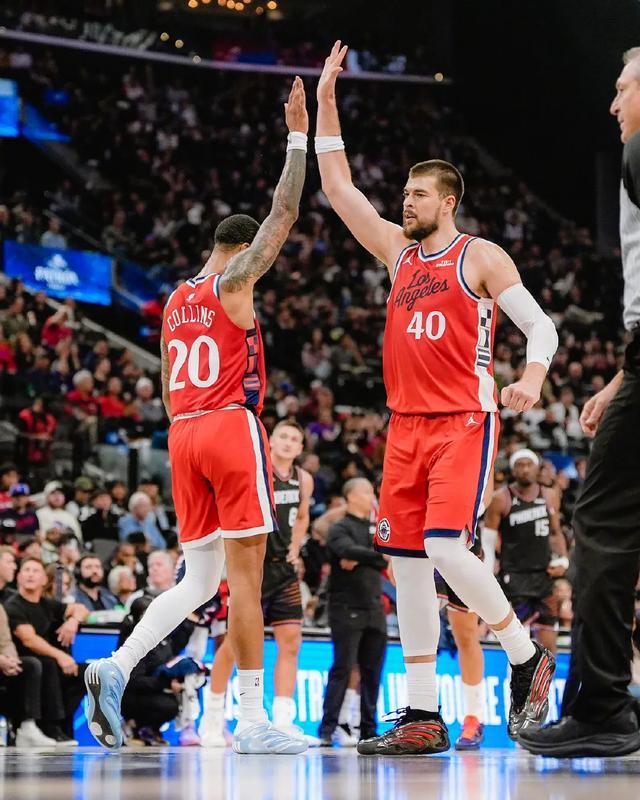 那么快船用鮑威爾換科林斯的意義在哪里?只是為了增加板凳陣容深度?科林斯和祖巴茨不存在位置沖突,甚至科林斯也可以拉出去投三分,賽季至今他的三分命中率有47.4%,今天又是3中2的三分。